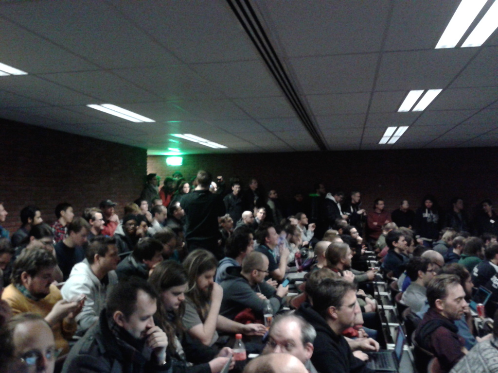 Dernier journée au Fosdem: cette fois-ci le temps se gâte avec l’apparition du vent et de la neige, mais vu la foule présente il est exclu de prendre froid dans les salles !